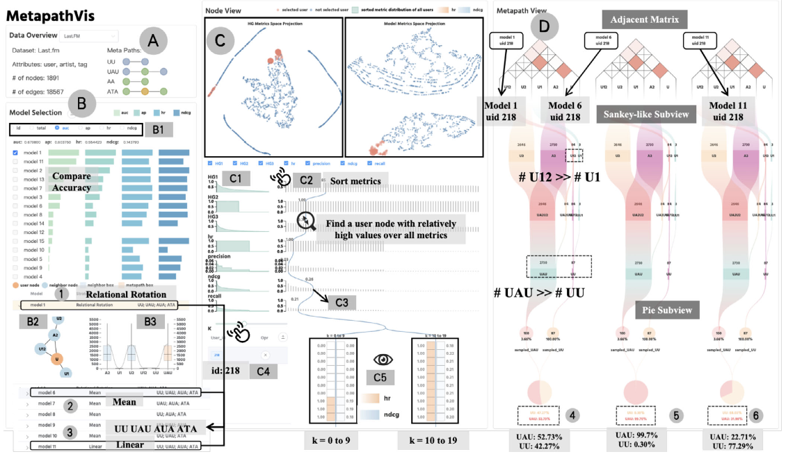 Li, Q., Tian, Y., Wang, X., Xie, L., Lin, D., Yi, L., & Ma, X. (2025). MetapathVis: Inspecting the Effect of Metapath in Heterogeneous Network Embedding via Visual Analytics. Computer Graphics Forum. 44(1): p. e15285. HTML